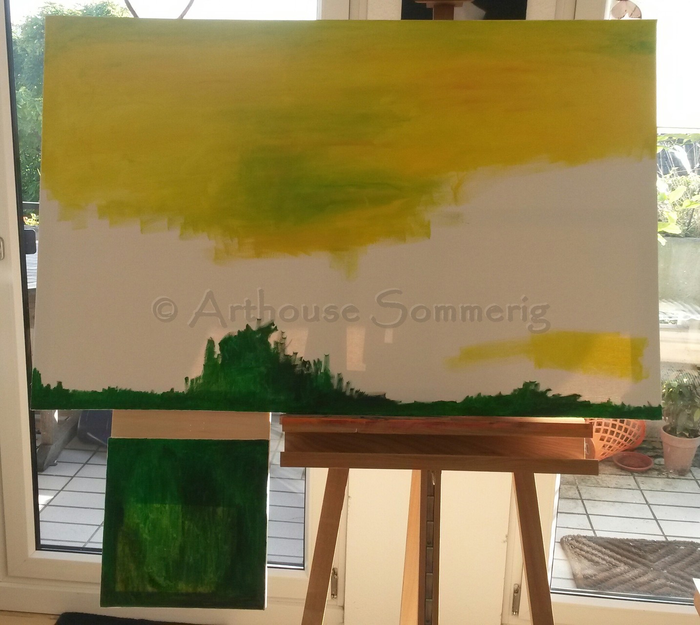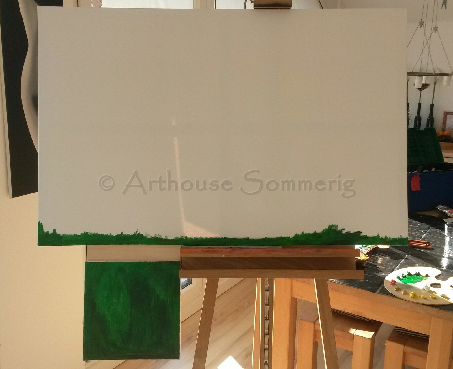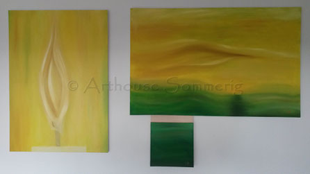 Hier seht Ihr die einzelnen Entwicklungsschritte bei einem Ölgemälde von Kai. Es ist noch ohne Titel und auch noch nicht fertig. Bis zum nächsten Schritt muss eine kleinere Trocknungsphase