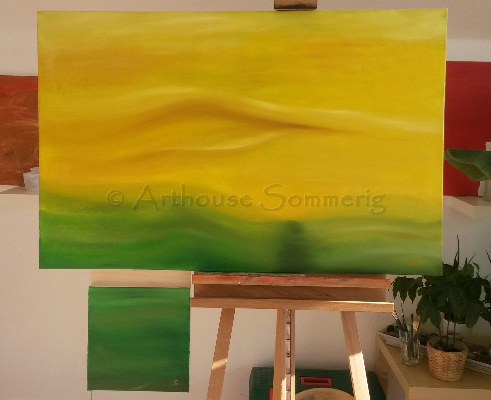 Diese Objekte werden in Etappen bearbeitet. Ölbilder brauchen lange zum Trocknen und manchmal ist es notwendig eine Pause